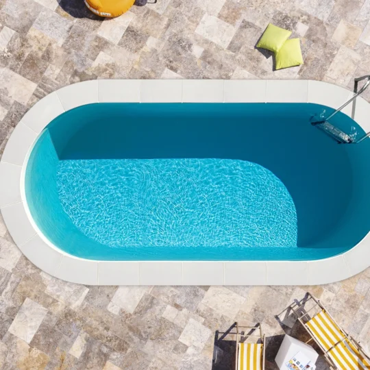 Côté accès, vous avez le choix entre deux escaliers : Enjoy, qui allie élégance et espace de détente pour deux personnes, ou Welcome, plus généreux et convivial, parfait pour les familles qui veulent profiter d’un véritable espace lounge dans leur bassin.