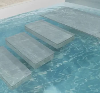 Son atout charme ? La possibilité d’y intégrer un banc en option pour créer une véritable plage immergée !. Vous pouvez également opter pour des marches Piano en « console » en finition grès cérame gris : un choix design et une exclusivité Waterair qui sublimera votre bassin.