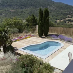 La piscine Inaya, dont le nom signifie « sollicitude » et « bienveillance », excelle dans l’art d’allier l’utile à l’agréable. Sa forme libre unique combine un espace rectangulaire et une zone de jeu arrondie. Détendez-vous sur la plage immergée côté rectangulaire et laissez les enfants s’amuser dans l’arrondi !