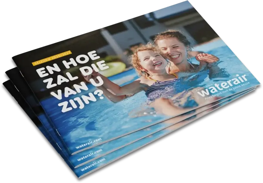Dankzij de catalogus van Waterair zwembaden kunt u alles kiezen, van A tot Z, om het zwembad van uw dromen te creëren. Ontdek onze stap-voor-stap gids om alles tot in het kleinste detail uit te zoeken en te kiezen: vorm en grootte van het zwembad, trap of ladder, kleur van de liner, bodemprofiel, uitrusting, enz. Zoveel mogelijkheden om het zwembad te kiezen dat bij u past. Het begint allemaal met de juiste keuze!