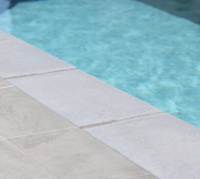 Tutti i bordi per piscine grigi in pietra ricostituita subiscono un’evoluzione del loro colore nel tempo.