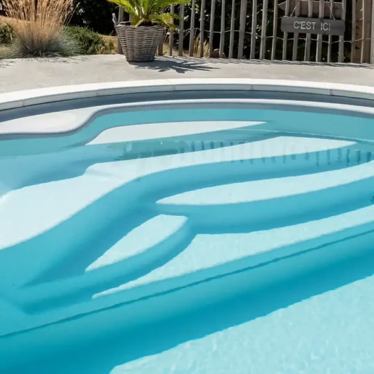 The wider Welcome steps create a real relaxation area in your pool, where several people can sit together. This is also true of the Pacio model, with its stylish and generous curves, and the Enjoy steps, which are designed to seat two people.