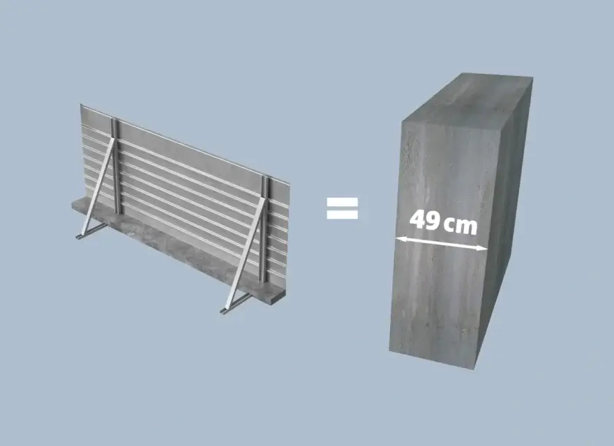 The Numerical Simulations engineering office validates that the Waterair structure is more stable to tilting than a concrete wall up to 49 cm wide.