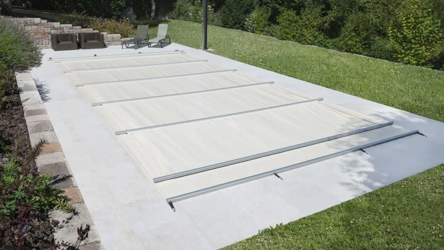 Couverture de piscine sécurisante et chauffante Solae par Piscines WaterairCouverture de piscine sécurisante et chauffante Solae par Piscines Waterair