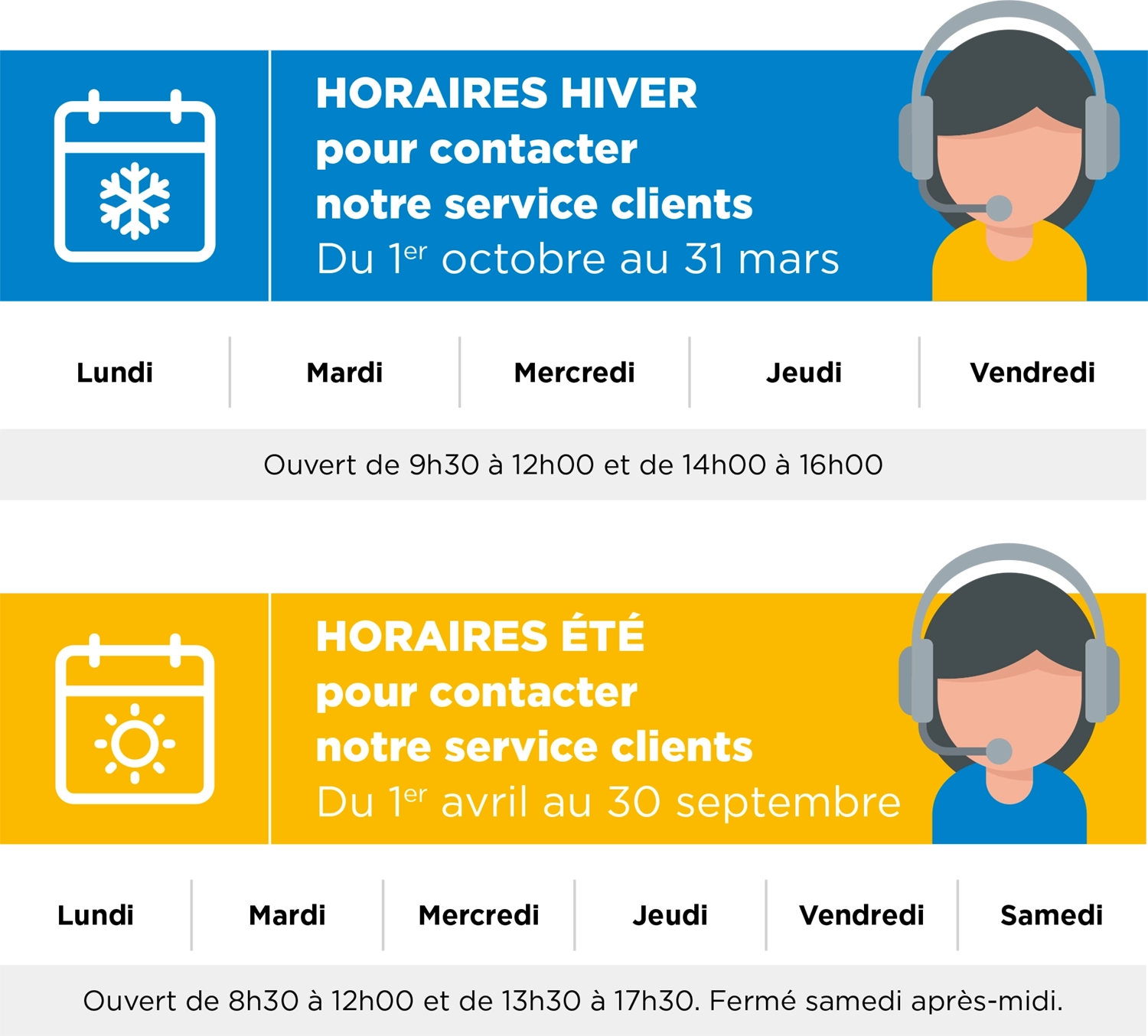- du lundi au vendredi : 8h30 à 12h00 - 13h30 à 17h30.