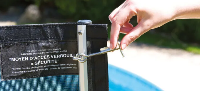 Chez Piscines Waterair, retrouvez notamment la barrière souple Astro, conforme à la norme NF P 90-306. Conçue et fabriquée en France, elle se compose de modules pré-montés d’une hauteur de 1,25 mètre sans prise pour grimper. Vous trouverez dans ce kit :