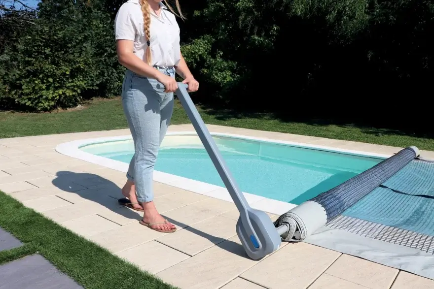 * Temps constaté pour l’enroulement d’une couverture d’un poids d’1,1kg/m² sur une piscine de 10m x 5m : 50 secondes.