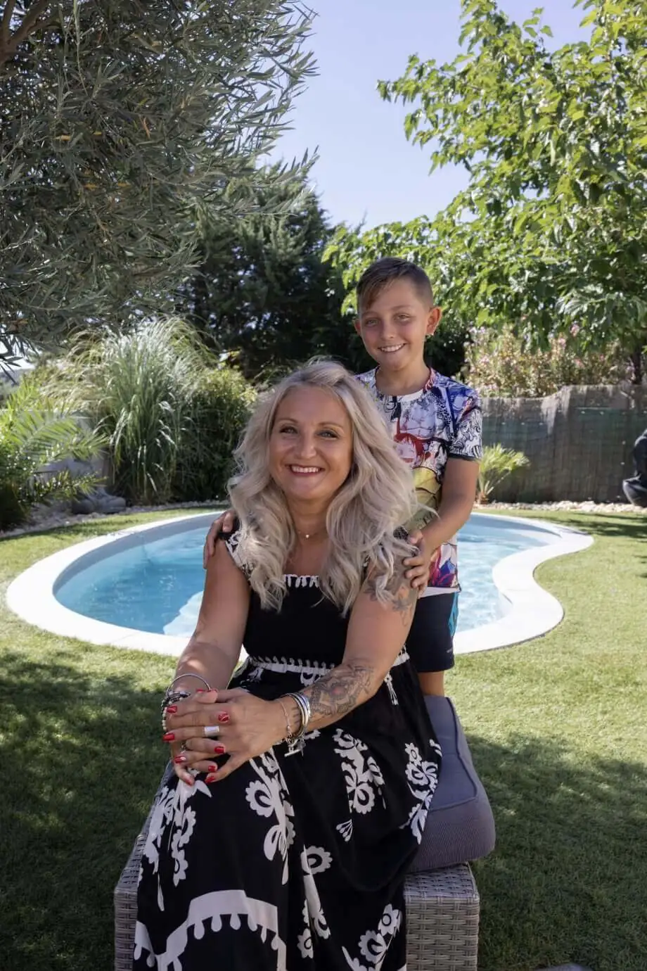 Avis client, témoignage : retrouvez aujourd’hui en vidéo le témoignage de Valérie, au bord de sa piscine Waterair Sofia, forme haricot.