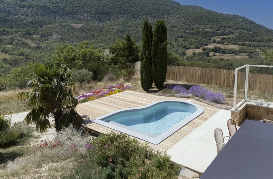 Der Mini-Schalenpool aus Polyester bietet die gleichen Eigenschaften wie ein sogenannter “klassischer” Schalenpool. Er wird aus einer vordefinierten Form hergestellt und in einem Stück geliefert. Die Installation muss durch einen Fachmann erfolgen.