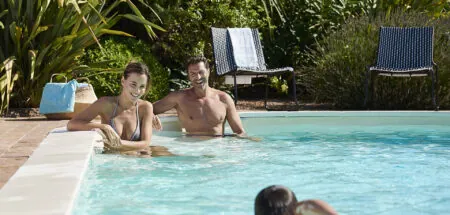 Wat betreft de look van uw zwembad, kunt U de kleur van het water kiezen dankzij onze verschillende liners. Grijs, Toscaans of gemarmerd leisteen : elke kleur zorgt voor een andere sfeer in uw tuin. Het terras kunt U bijvoorbeeld bedekken met randtegels. Dit soort tegels zorgen voor een nette en elegante afwerking.