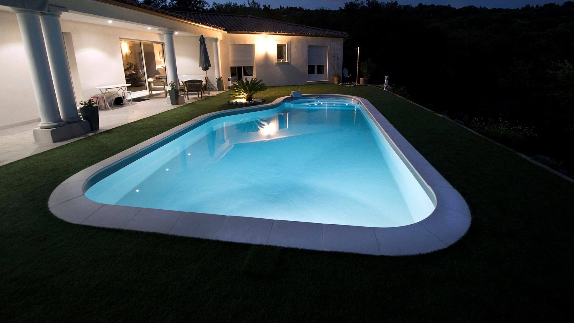 This model, with its harmonious mix of curves and straight lines, can easily be covered and naturally segments your pool into games, relaxation and swimming areas. Given the large selection of sizes, the Cléa can fit seamlessly into any garden. Steps set inside a spacious curved niche make for a truly unique design.